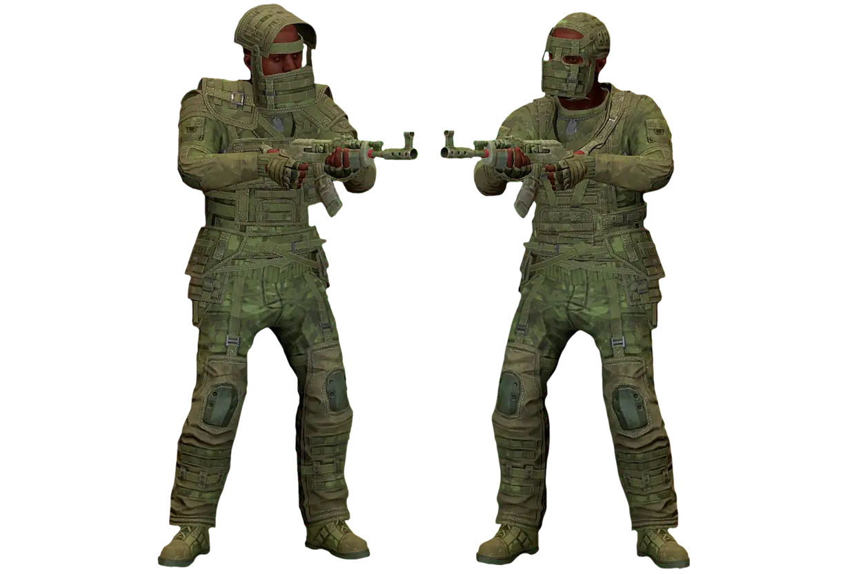 This combo is a mix of a clean dark base and bright armor and weapons — it’s all about flex, not camo. Yeah, most of the price here is in a single mask, since it’s one of the oldest skins in Rust, but that doesn’t change the fact that the set fully deserves its spot in the top. In fights people see you instantly, but they also immediately understand you’re someone who takes their inventory seriously. The set includes: