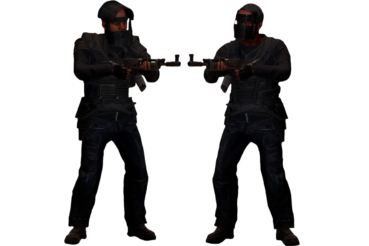 Full black clothing that gives you a huge advantage in nighttime fights, raids and counter-raids. At night this kind of player basically turns into a shadow, especially if you turn off flashlights and play off sound. It’s the perfect choice if you like PvP not only in daylight but also under the moon: